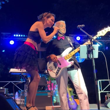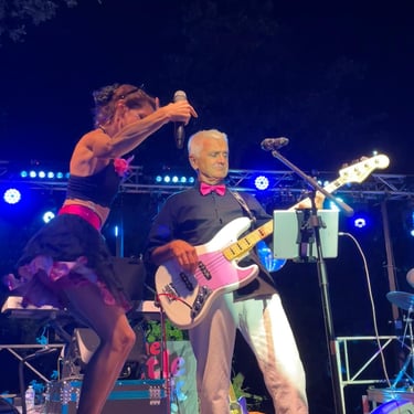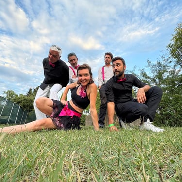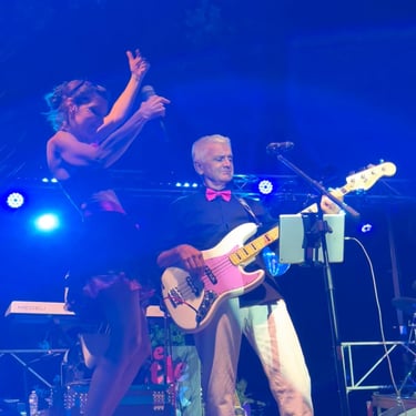À ses côtés, trois complices façonnés pour la scène : du groove, du smile, du fun, et l’envie furieuse de partager un vrai moment joyeux et sincère avec le public.